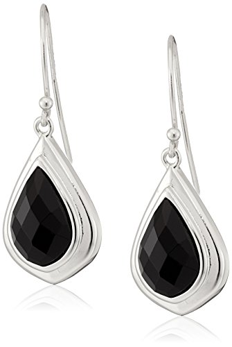 RHODIUM PLATED STERLING SILVER KITE SHAPE BLACK AGATE WIRE DANGLE EARRINGS