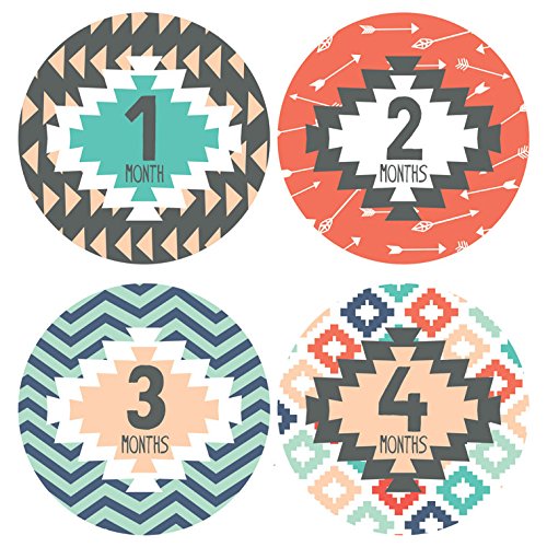 -. Title : Lucy Darling Baby Monthly Stickers - Gender Neutral - Tribal P.R.Int - Months 1-12