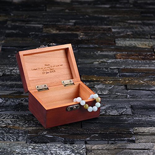 -. Feature : Vintage-style wooden jewellery trunk box / Perfect for storing jewellery or precious bits of memories / Ideal wedding or housewarming gift / Hand finished with free engraving. Choose a design from the menu and send your lettering (we will confirm via email) / To send design request: Complete Purchase then click YOUR ORDERS > Get Help With Order > Contact Seller