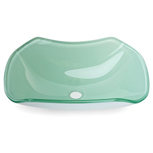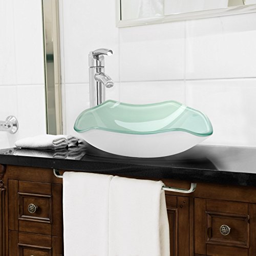 Tempered Glass Vessel Bathroom Vanity Sink Scalloped Bowl, White Color