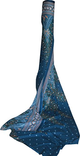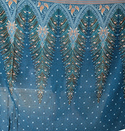 RaanPahMuang Rayon Fabric Peacock Feathers Artwork 42in x 3yd , Sea Blue