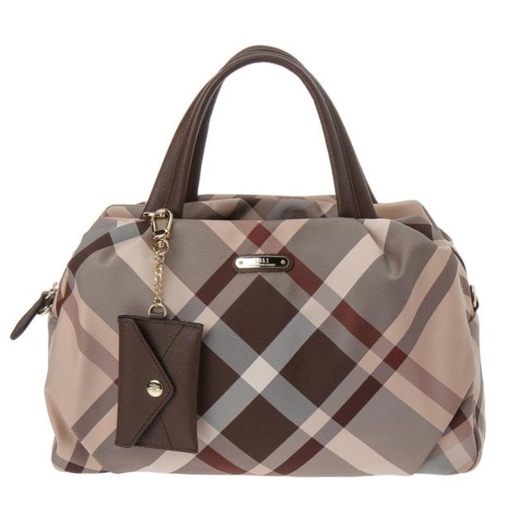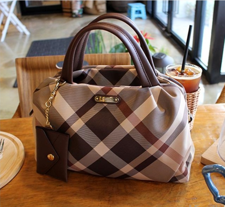 클래식한 체크 패턴을 사용하여 깔끔하고 참 장식으로 포인트를 준 심플한 외관의 토트백입니다.