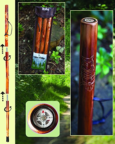 Owl Take A Hike Compass Folding Walking Stick with Travel Pouch - 48 In. Long