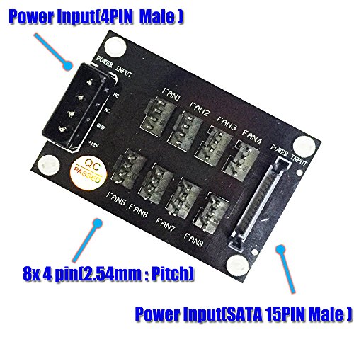 4-Pin or SATA 15-Pin to 8x 4-Pin Fan Splitter Hub (Power from One 4-Pin Molex or SATA 15-Pin connector)