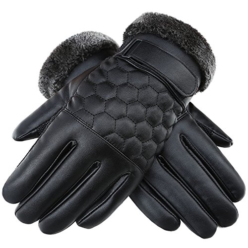 -. Title : YQXCC Winter Men's Leather Gloves Touch Screen Outdoor Sports Cycling Windproof Warm Gloves
