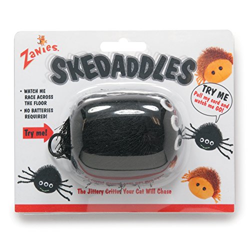 -. Feature : Skedaddle bies work without batteries! / Simply pull the cord to make them skitter and jitter! / Pine-needle plush and multiple legs increase the wiggle effect / Rapid Motion entices frisky felines to leap and pounce / Clip Strips Holds 3 spiders and 3 Centipedes; each toy measures 3.5"