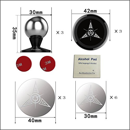 - EASY AND SECURE- uses the neodymium magnets to secure your mobile safely in place. Simply attach the slim plate to the center of your phone or case , adhere the cell phone car mount to your dashboard with 3M adhesive pad. and let magnetic power do the rest.