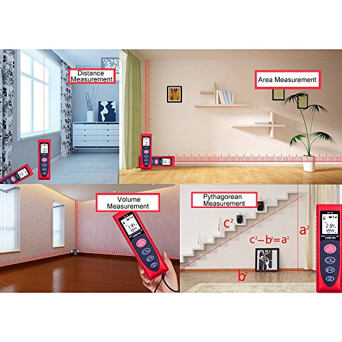 - Multi measurement modes: Single-distance measurement, continuous measurement, area measurement, volume measurement & indirect pythagorean measurement, greatly save labor and time. Automatic calculation of area and volume.