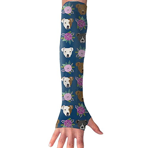 (JJZ-SUN)/Accessories/Cold Weather Accessories/DIRECT FROM USA/Adult Pitbull Floral Dog Head Funny Pattern Arm Sleeves Arm Warmer Long Sleeve Glove 1 Pair - 2...