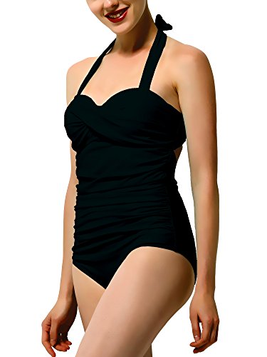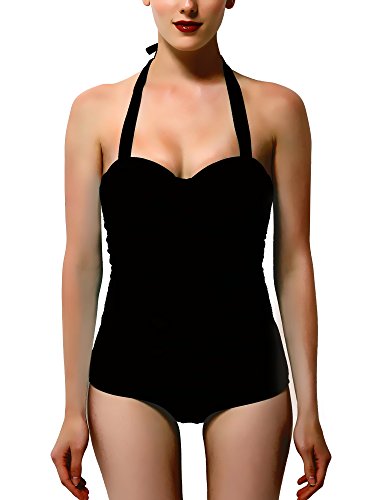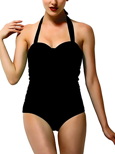 Feature : Our swimsuit does run a little small, so we would recommend ordering up in size. But,the hot one piece swimsuits is a very nice bathing suit! The material is smooth and soft to the touch. Our swimsuit is well made. The front is fully lined, stitching is all even with no stray threads and the spandex is a nice heavy-weight fabric. There is extra material under bust and tummy area to help flatter your figure / Our swimwear has many different features that are meant to flatter all different body types. The halter tie top of this swimwear is allows this swimsuit to be adjusted to fit your torso, whether yours is longer or shorter you will have a nice and comfortable fit. The strap is not going to tug on your neck like a swimmin suit that is not adjustable would. The bustline has a twist in the fabric, which is flattering and creates a sweatheart neckline. / The front stomach area has ruching, which is great for concealing your tummy flaws. The leg cut is lower that many bathing suits, which is in line with the whole vintage look. The elastic around the bottom of this bathing suits is very comfortable, being not too tight or too loose. Our one piece swimsuits are very stylish and flattering, perfect for any age, including girls, juniors, and women / This women swimsuit one piece offers full coverage for the front and back, which is nice for those that are looking for a more modest swimsuit. The cups are removable padded with a strap around the back that almost gives this women bathing suits a two piece look from behind. There is a hook on the back to give you even more support. Three slots on the straps hook this cute swimsuits in / This swimming suit is comfortable to wear even when wet because the ruched mid section does not show the cling to wet skin that most swimming suits have. The color of this one piece bathing suit is very summery, perfect for every day wear at the pool, springs or beach. Our halter bathing suits come in a zip lock plasitc bag.
