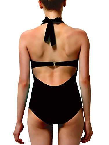 Title : Women's Sexy Fashion Draped V Neckline Open Back One Piece Bikini Monokini SwimSuit Bathing Swimming Suits Swimwear-Black M