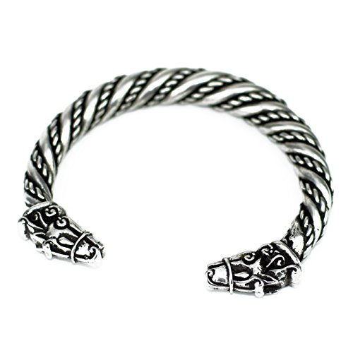 Our Sleipnir, Odin's steed bracelet is an original design carved in the Ringerike Style that's inpired by Viking age artefacts. The large and chunky band tapers slightly from the centre, just like a number fround in the Viking period. It weighs a hefty 108g, measures 22.6cm around the band from head to head, and has a gap of 3.1cm between the noses. Our our pewter is lead free and cast by us at our workhop in Scotland. This bracelet can be adjusted once. It can be sized to fit so that you can take it on and off without further adjustment. It's designed to be worn loose.Feature
