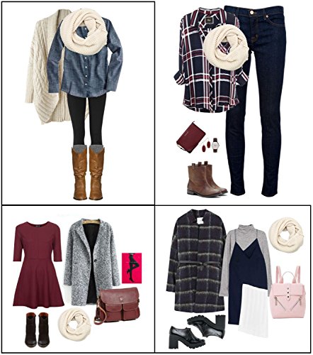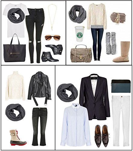 Overall, these scarves are a must have for your fall and winter wardroble. They're very versatile and can be dressed up or worn casual. They come with 4 different colors, which makes them a great matching accessory with any of your outfits. The knit infinity scarf is not bulky, and have a nice casual slouchy look which would look great on both women and men. They appeals to many different people so can be a great gift on birthday, Christmas Day.