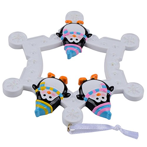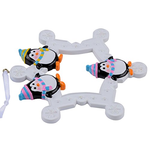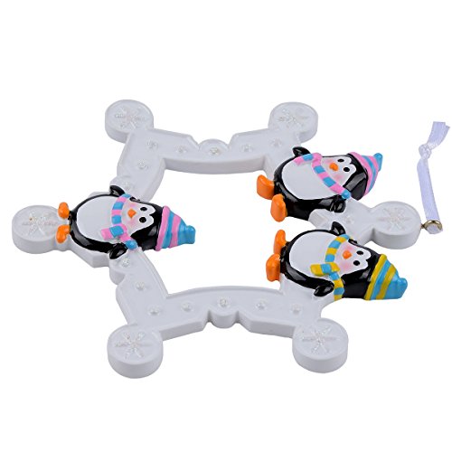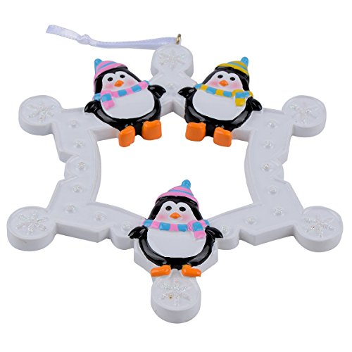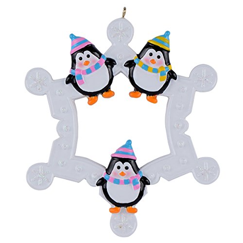 Snowflake Penguins Family of 3 Personalized Ornament