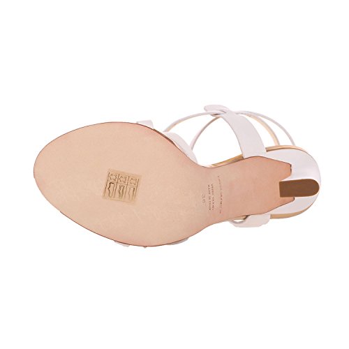Complete your every day look ensemble with an elegant pair of this white leather strappy high heel sandals, featuring crossing straps and adjustable ankle strap for an extra dose of glamour. Sophisticated and elegant, these white sandals from Dsquared2 accent skirts and pants with a dressy finish.