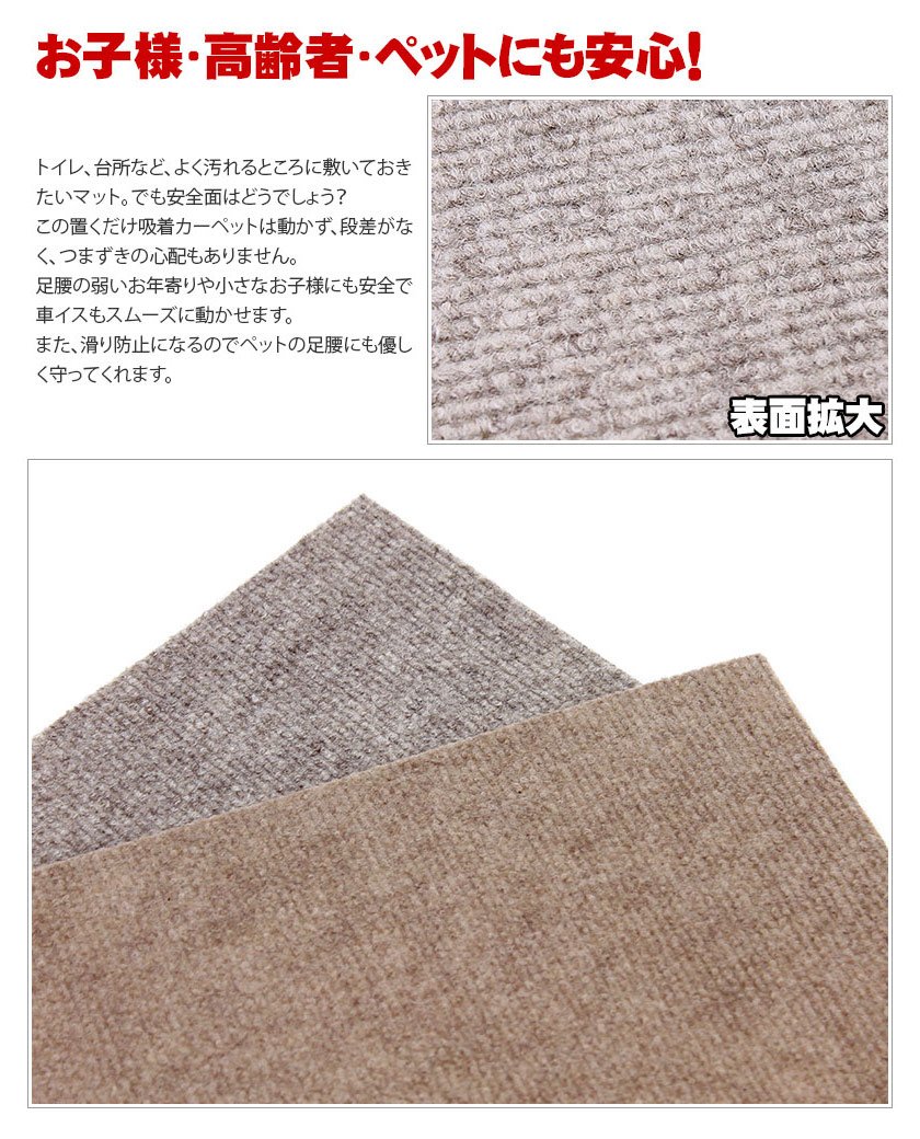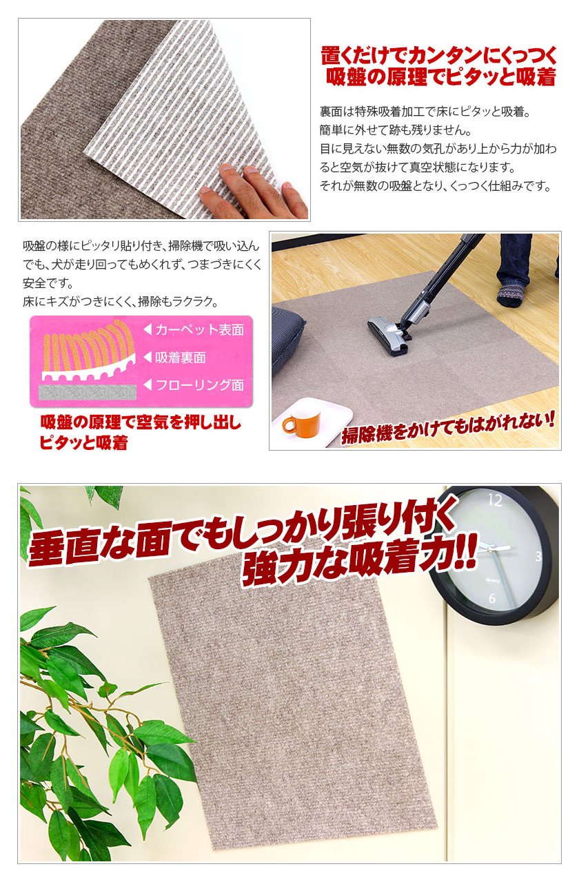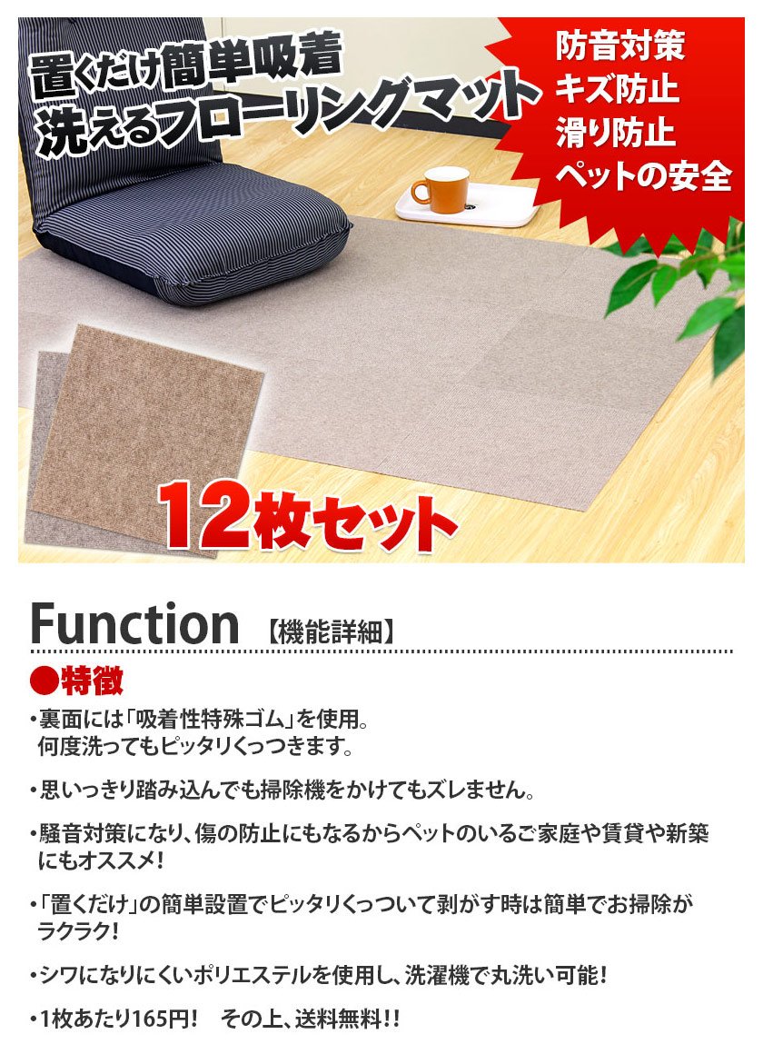 商品サイズ:約35×35cm 厚み約2mm 商品重量:約0.67kg(12枚の合計) [材質]表面/ポリエステル、 裏面/アクリル樹脂 生産国:ベトナム セット内容:12枚入り 洗濯可能(弱水流のまたは、弱い手洗いが良い) ※床面が塩化ビニル製の場合、変色する恐れがあります。