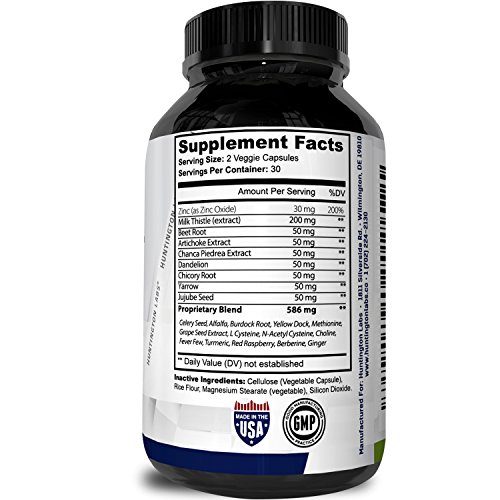 -. Brand : Huntington Labs -. EAN : 0793574994546 -. Feature : PREMIUM LIVER DETOXIFIER - Plant based herbal complex that provides a liver detox cleanse weight loss for Women and Men. Reduce bloating and weight gain, for improved overall health & wellness. / BENEFITS OF A CLEAN LIVER - This liver detox supplement supports a healthy liver for increased energy and even weight loss! Additionally, Vitamins B6 and B12 means improved mental clarity and mood! / ALL NATURAL LIVER RESCUE INGREDIENTS - Milk Thistle Extract contains Silymarin Dandelion root powder, and Burdock extract to help to detox while Stinging Nettle and Uva-Ursi Extract enhance vitality! / POTENT AND EFFECTIVE - Liver detox capsules help to detoxify the liver and other organs from harmful waste. Because our supplements have no filler ingredients, you can count on their quality and potency. / 100% CUSTOMER SATISFACTION - This premium bottle with fast acting pure capsules is produced in a FDA, GMP certified facility and is a Non GMO product. -. IsAdultProduct : 0 -. Label : Huntington Labs -. Manufacturer : Huntington Labs -. MPN : LE -. PackageQuantity : 1 -. PartNumber : LE -. ProductGroup : Health and Beauty -. ProductTypeName : DIETARY_SUPPLEMENTS -. Publisher : Huntington Labs -. Studio : Huntington Labs -. Title : Liver Cleanse Detox Weight Loss and Energy Supplement for Women and Men –Liver Health Complex with Milk Thistle Dandelion Berbine & Burdock – Antioxidant Support - Boost Immunity By Huntington Labs -. UPC : 793574994546