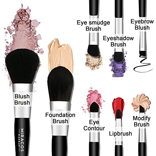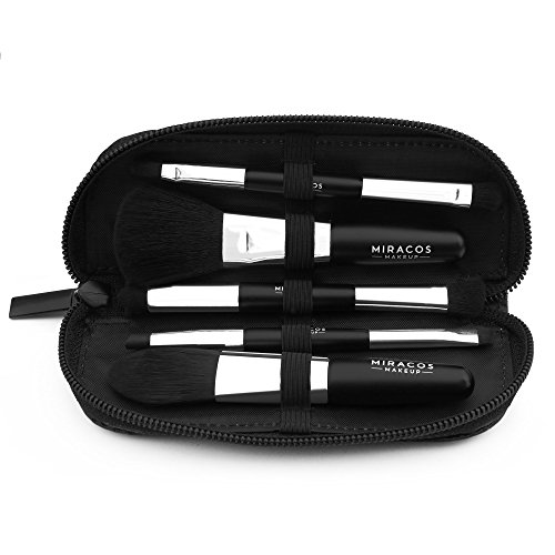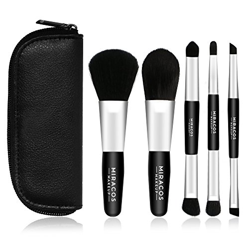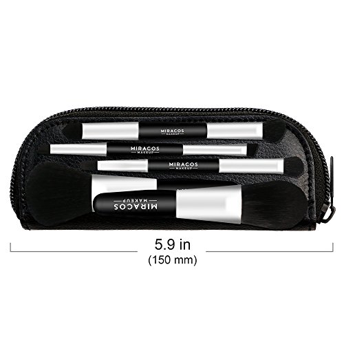 MIRACOS Mini Premium Makeup Cosmetic Brush Set Foundation Blending Blush Eyeliner Face Powder Brushes Kit with Travel Case Dual Ended