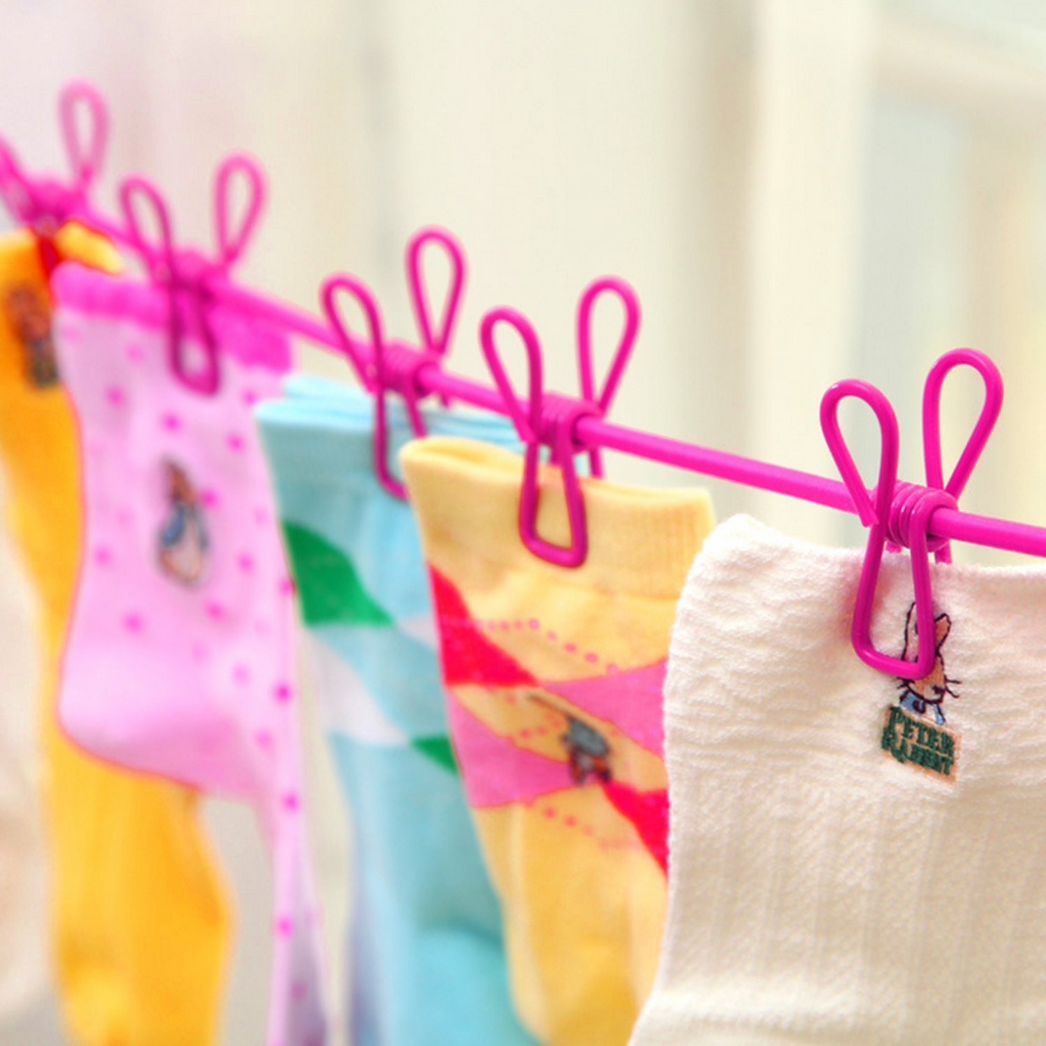 Because it is a washing rope with clothespin, firmly sandwich, underwear, small clothes etc, put the convenience dry.