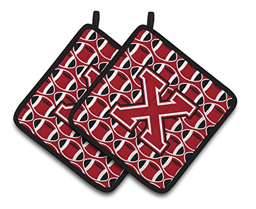 Caroline's Treasures Letter x Football Red, black & White Pair of Pot Holders CJ1073-XPTHD, 7.5HX7.5W, Multicolor