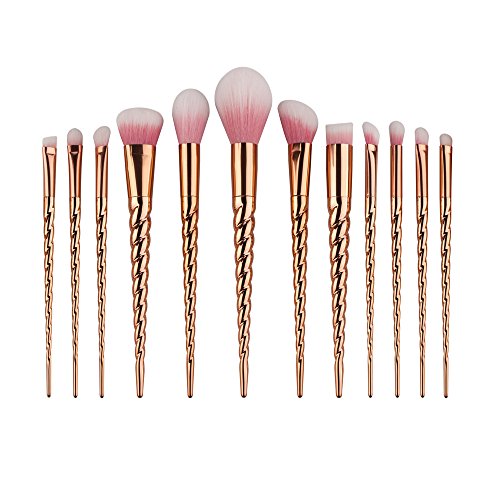 Professional Makeup Brushes Set Colorful Unicorn 12Pcs Foundation Powder Eyebrow Eyeliner Eye-shadow Brush Cosmetic Concealer Brushes Kit Tool (Rose Gold)