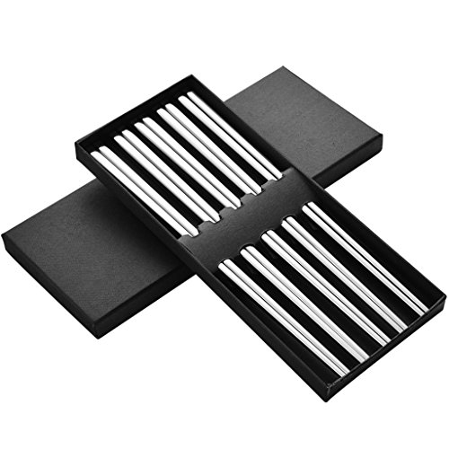 Stainless Steel Chopsticks Quality Metal Chopsticks Luxury Square Stainless Steel Hotel Restaurant Chopsticks 5 Pairs Gift Set