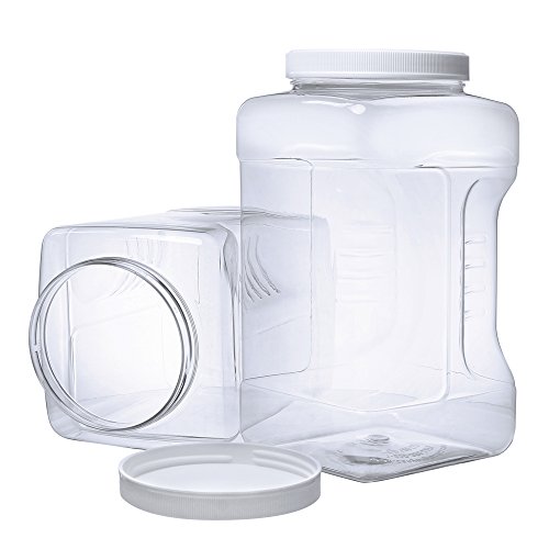 2 Pack - 1 Gallon Large Clear Empty Plastic Storage Jars with Lids - Square Food Grade Air Tight Wide Mouth Container with Easy Grip Handles - BPA Free Multi Purpose Jar