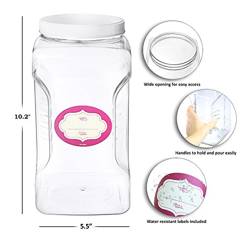 [Product Information]- GREAT QUALITY - Made out of hard commercial grade PET plastic that is food safe and has high clarity and is very strong and durable, great replacement for those heavy glass jars that easily crack & break. NOT DISHWASHER SAFE