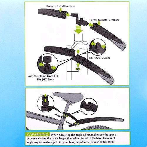 -. Binding : Misc. -. Brand : GEEDIAR -. Feature : Front and rear mudguard set is suit for 24" - 29" wheels. / Material: Senior soft rubber, Durable, not easily broken. won't rust and can be easily cleaned. / Built in quick release clips so mudguards can be removed without tools in seconds. / Front Mudguard: 23cm, 32cm, width: 7cm, Rear Mudguard: 56cm, width: 7cm / Available in a variety of different colors. -. IsAutographed : 0 -. IsMemorabilia : 0 -. Label : xiaokesong -. Manufacturer : xiaokesong -. PackageQuantity : 1 -. ProductGroup : Sports -. ProductTypeName : SPORTING_GOODS -. Publisher : xiaokesong -. Studio : xiaokesong -. Title : Floding Bike Bicycle Mudguards Mountain MTB Cycling Fender Front/ Rear Fender Mud Guards Set