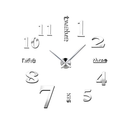 -. Title : Yesurprise Large Wall Clock Modern Mute 3D Frameless Mirror Surface DIY Room Home Office Decorations