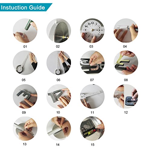 -. Feature : Certification: CE; Material: Alloy clock face,aluminum clock pointer and EVA foam stickers; / Hour hand length: 31cm /12.4" ; Minute hand length: 39cm / 15.3"; Clock machine face: 12cm/ 4.9" / The clock finishing size is depends on your preference to decorate your wall,the minimum achieving is: 63cm x 63cm / 24.8" x 24.8". / Usage: For gifts and crafts,business gifts,holiday gifts,promotion gifts,home decoration; Suitable place: Living room, kids bedroom, dining room, kitchen, office, bathroom, outdoor / 100% new product ,clock surface have a protective film,Please tear off after installation.Note :Please don't install the hour pointer and minute pointer very tight,if not ,that will cause the clock does't move.