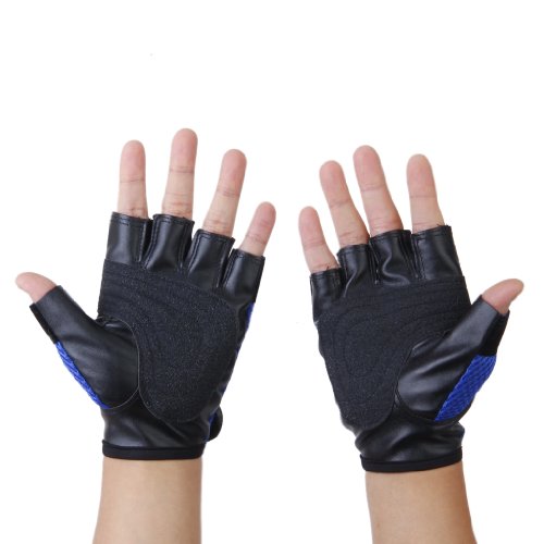 This pair of glove is designed for the guys who love sport Mesh fabric material and open design on the back of the hand, breathable in case of sweat. Magic tape adjusts the wrist for better fit. Special tailor offer your hand better flexibility the palm has non-slip artificial leather pad, great anti-skidding. Great for cycling, Roller-skating Volleyball Motorbike etc Size: one size fits all Length: Approx. 5.94 inch / 15.1cm Palm Width: Approx. 4.29 inch / 10.9cm Material: artificial leather Color: Blue black Kindly NOTE: Please refer to the dimensions before your order.
