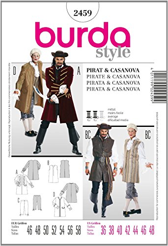 -. Feature : BURDA 2459 SEWING PATTERN / PIRATE COSTUME / SIZE MENS 36 38 40 42 44 46 48