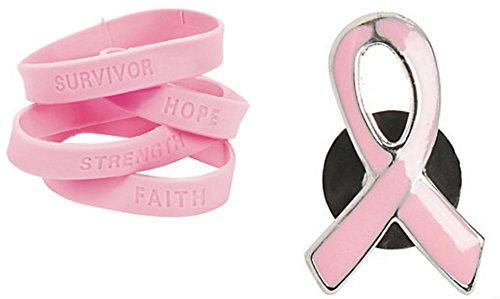 Pink Awareness Bracelet and Pin Set (36 Pieces)