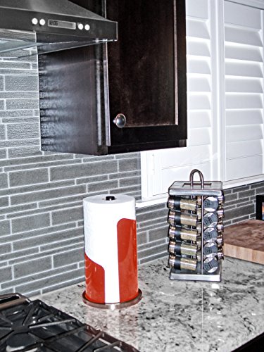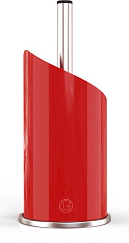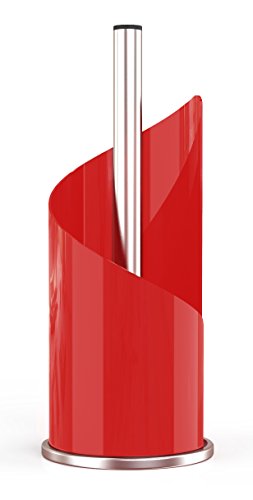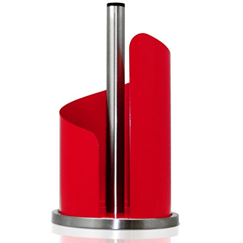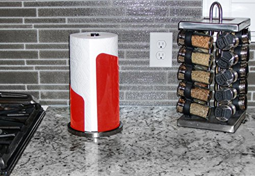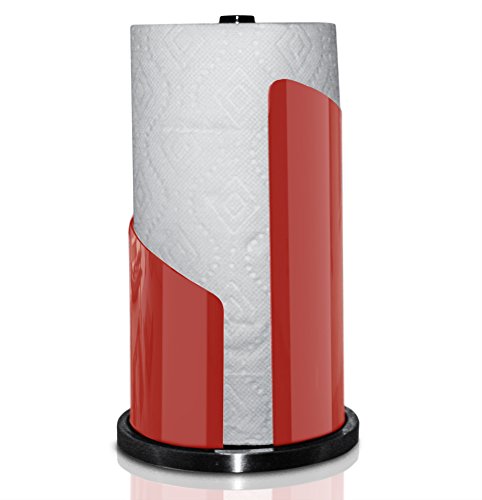 Paper Towel Holder | Brushed Stainless Steel & Iron Accents | Won’t Unravel or Tip Over | Designed for Most Roll Sizes | Vertical Countertop Dispenser (UpGood Paper Porter, True Red)