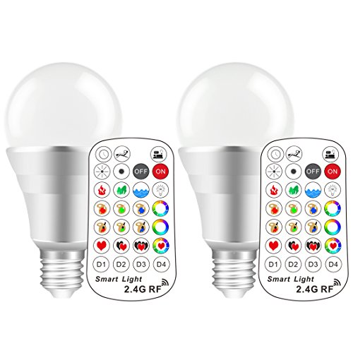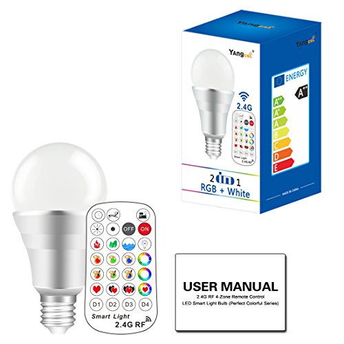 Yangcsl 10W Dimmable LED Light Bulbs, E26 Color Changing Smart Light Bulb with 2.4G RF Remote Control (4-Zone), RGB & Warm White (Pack of 2)