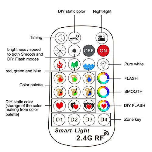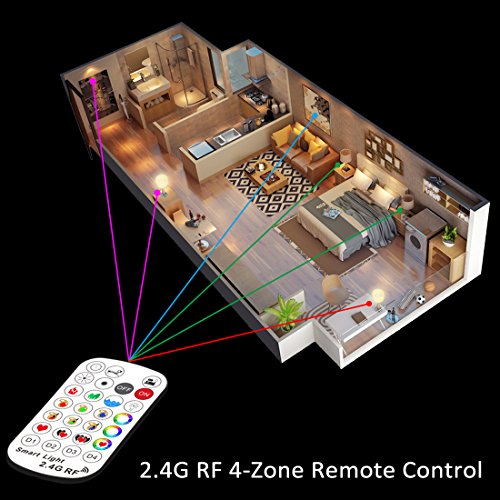 - With the upgrade 2.4G RF 4-Zone wireless remote control, remote control distance is longer (10-15 meters), remote control angle is bigger [no alignment to lights/360 degree], include partition function, no interference among the lights while remotely control…… a perfect solution to the limitation of existing IR & RF remote control.