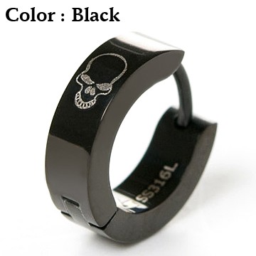 スカルデザインが入ったフープピアス☆シンプルデザインの着けやすいピアスです☆こちらの商品は片売りです☆