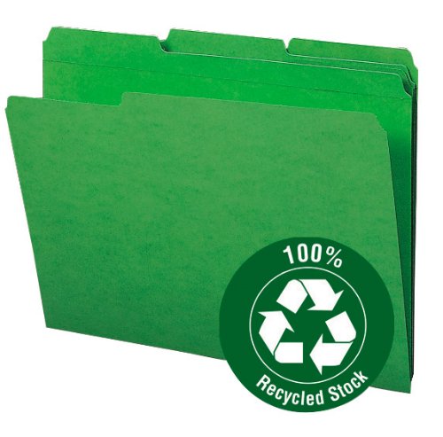 -. Feature : 100% recycled top tab folders are an economical and environmentally conscious way to organize files. / Reinforced 1/3-cut tab, assorted positions / Scored for 3/4" expansion / Acid free / 100% recycled content, 30% post-consumer material