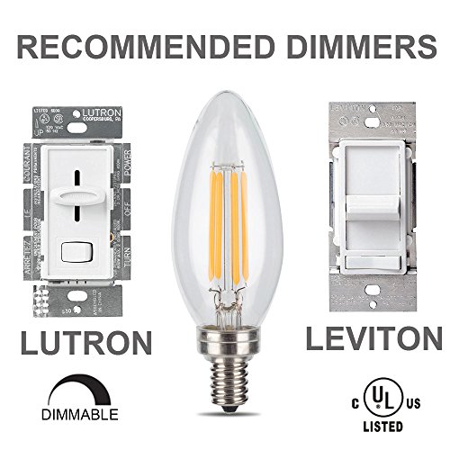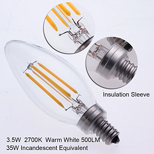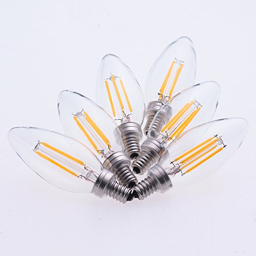 AWESON Dimmable LED Filament Bulbs 3.5W (40W Equivalent), B11 Chandelier Bulb, Wall Sconce Bulb, E12 Candelabra Base Lamp 2700 Kelvin Warm White 350 Lumens Torpedo Shape 30000 Hours 6 PACK UL Listed
