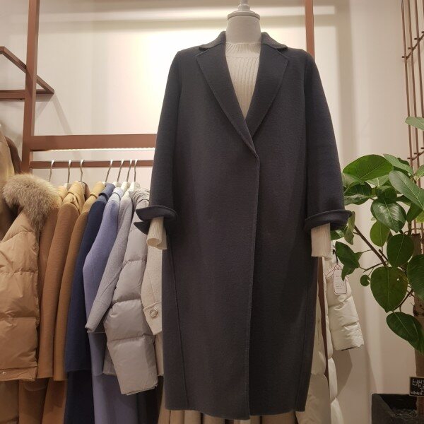깔끔한 루즈핏의 캐시미어 롱코트입니다컬러감이 예쁘고 날씬하고 길어보이는 핏의 겨울 롱코트입니다.총기장 110센치입니다.