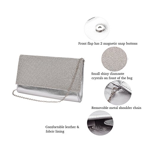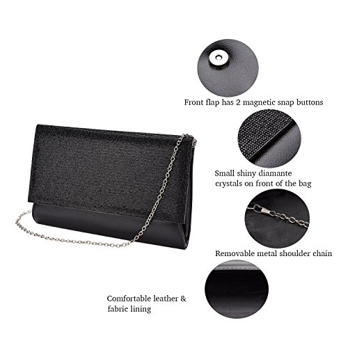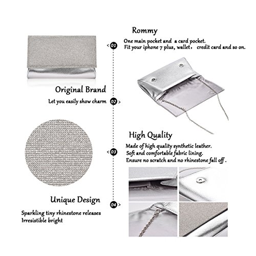 Product Description Product description: Description : Coming in 3 color choices, this Evening bag has Shimmering rhinestone designed with a detachable long metal shoulder chain. Definitely a good choice for wedding, party, prom, ball, family reunion and evening events and so on. Features: Sparkly rhinestone ornament Material: Synthetic leather Shape/pattern: As picture shows Function: clutch, evening bag, handbags, cross body bag Color: Black/Silver/Gold/Pink Size: "11(L)*"1.8(W)*"6.9(H) (inch) Notice: The color as seen in picture may have color difference because of your screen setting. If you have any issues, please feel free to contact us and we will be happy to solve your issue. 0