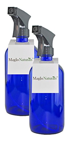 MagJo Naturals Empty Glass Spray bottle 2 pack (BLACK SPRAYER/BLUE BOTTLE)