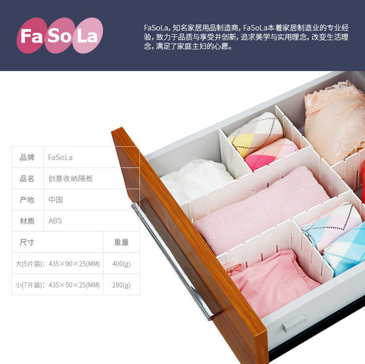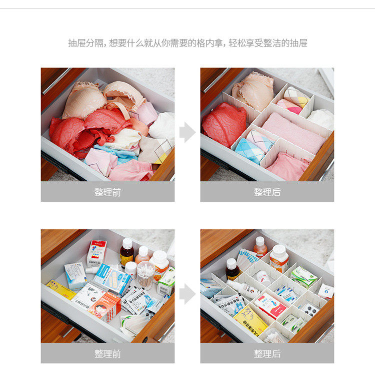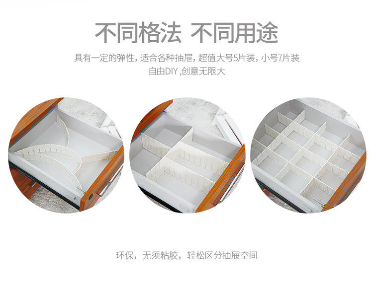Creative storage partitionMaterial: ABSsize:S 435 * 50 * 25mmL 435 * 90 * 25mmQuantity:S 7 pieces L 5 pieces LS