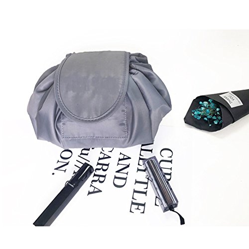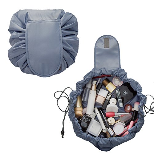 Lazy Cosmetic Bag, Toyoo Makeup Toiletry Jewelry Organizer with Zipper and Drawstrings (Gray)