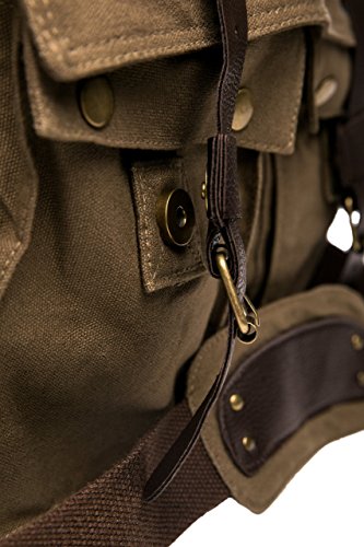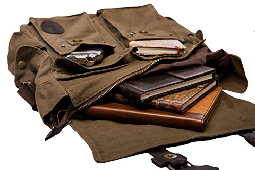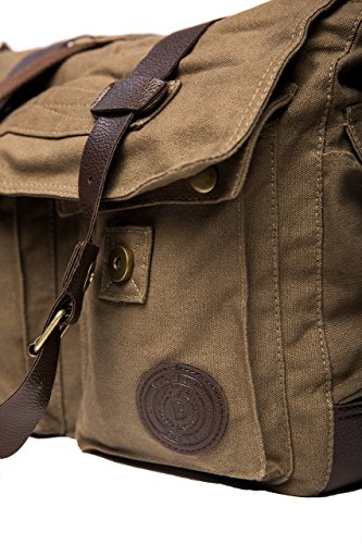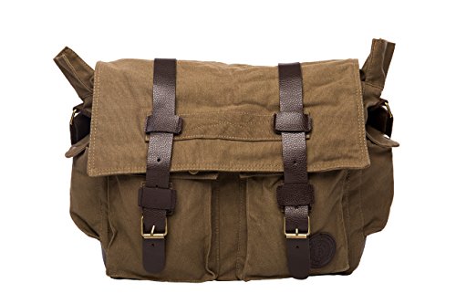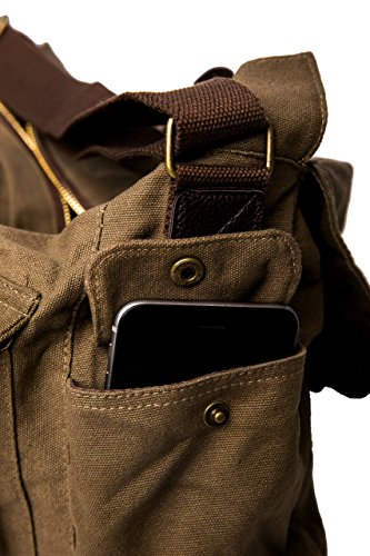 -. Brand : BroBag -. Department : unisex-adult (lage only) -. Feature : Our messenger bag features a spacious main compartment with a built in zippered pocket in the inner lining to hold your valuables / Carefully constructed of high quality 16 oz. canvas with leather straps. Durable stitching ensures a long life for your BroBag. The metal zipper extends beyond the width of the main opening to allow for easy access / Main flap closes with magnetic snaps so you don't have to undo the buckle. Two front pockets with snaps measuring 7 by 5 inches each and two side pockets with snaps measuring 5 by 5 inches for easy access / This messenger bag measures approximately 13 inches long by 11 inches tall and 5 inches wide. / Adjustable shoulder strap is made from a comfortable and strong cotton webbing. -. ProductGroup : Apparel -. ProductTypeName : LAGE -. Size : One Size -. Title : BroBag Men's Vintage Canvas Messenger Satchel Shoulder Military Field Bag