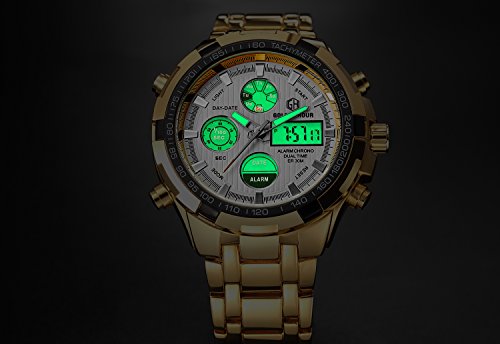 Special features:Backup battery, Chronograph, dual-Time-display, Luminous