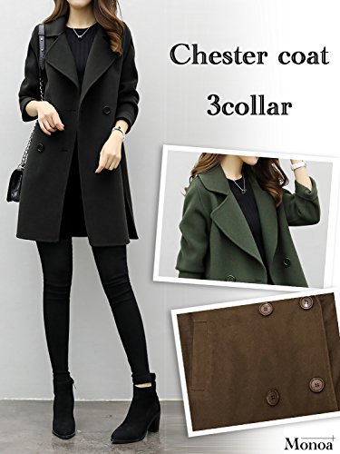 -. Title : Monoa(モノア) ダブルブレスト チェスターコート レディース エレガントな秋色 シンプル ハーフ丈 ピーコート 無地