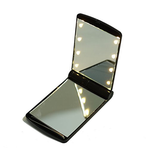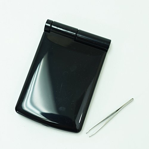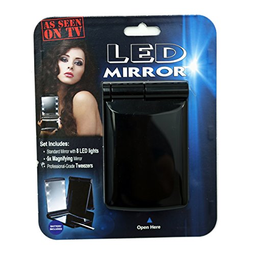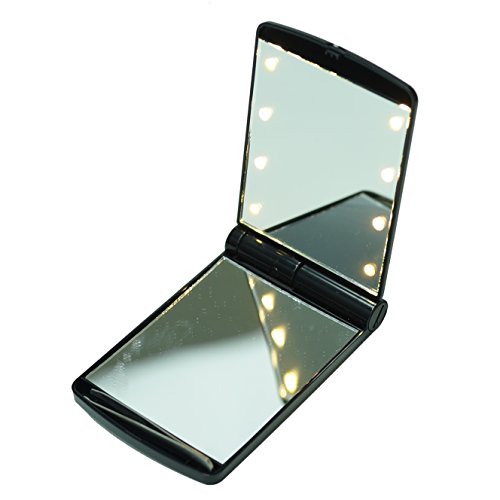 * Sale * Deluxe LED Compact Makeup Mirror Black True Mirror and 5x Magnification Includes Battery and Tweezers Perfect for Travel and Purses Folds Back for Vanity Style