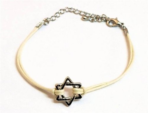 - Title : Kabbalah Beige Leather String Bracelet Silver Magen David Star of David Evil Eye Charm K-53